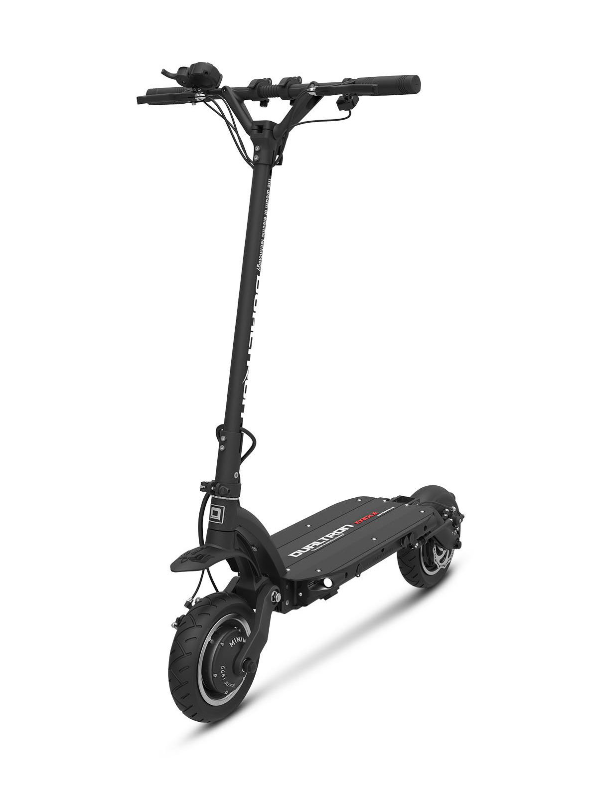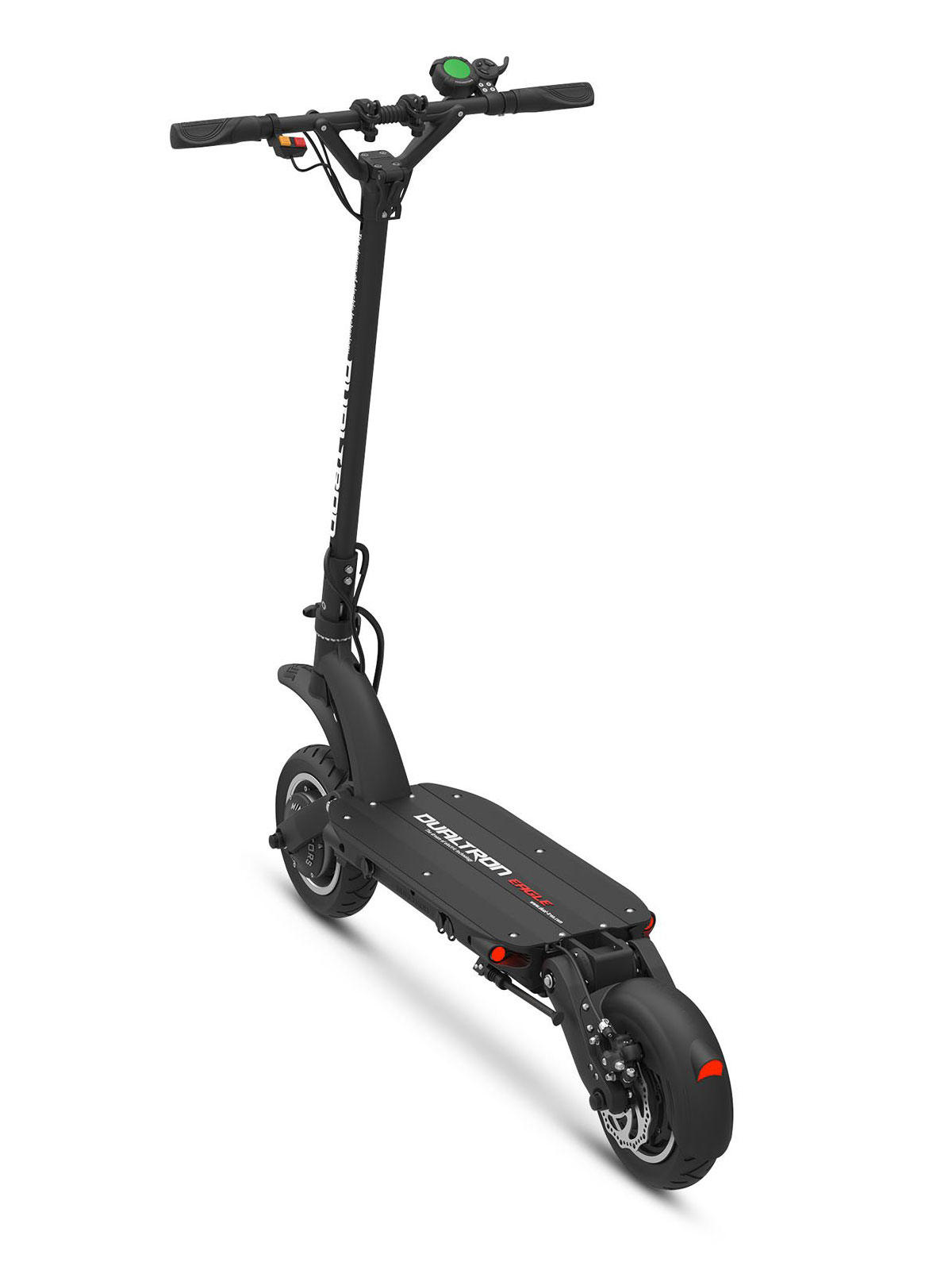 Equipée de deux moteurs de 1800W, de deux pneus gonflables de 10 pouces et de doubles suspensions à bras avant et arrière, la Dualtron Eagle vous propulsera jusqu’à 75 km/h sur voie privée avec un confort remarquable. Avec une batterie de 60v 18 Ah, nous pouvons atteindre jusqu’à 60 km en mode éco.
