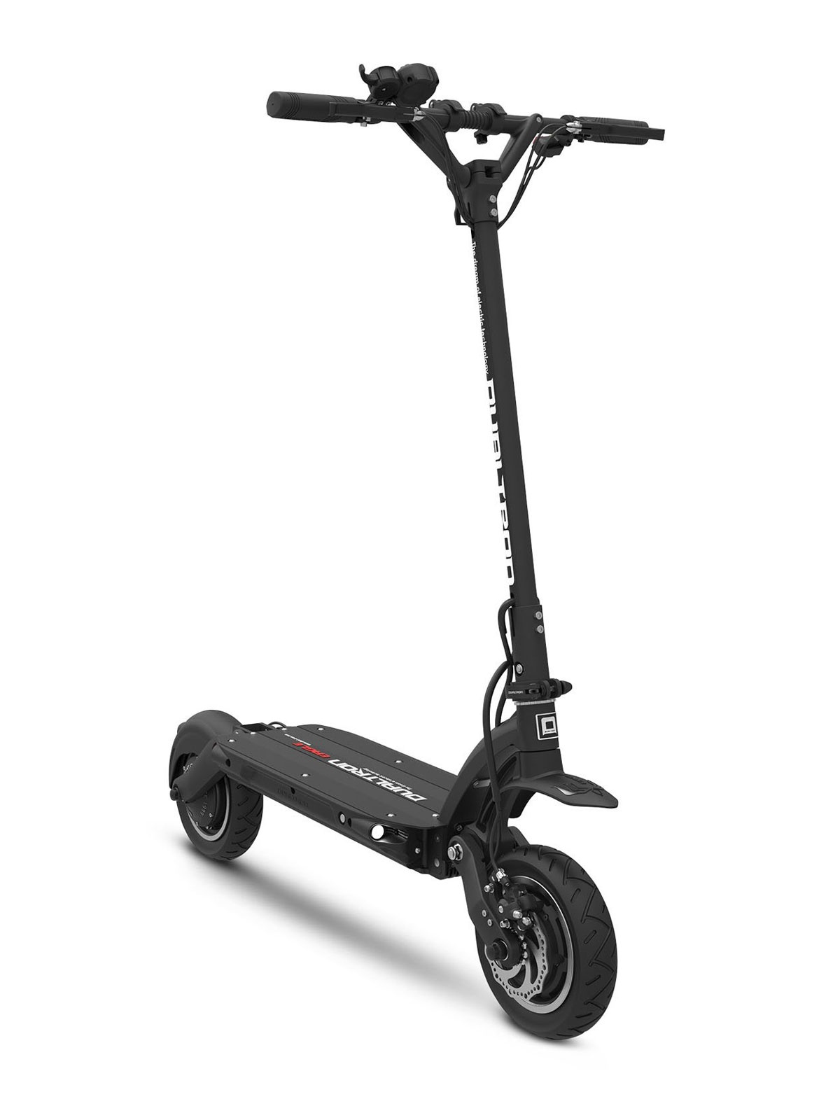 Les doubles suspensions à bras avant et arrière, les roues gonflables de 10 pouces, associées à un plateau extra large , permettent une tenue de route excellente.