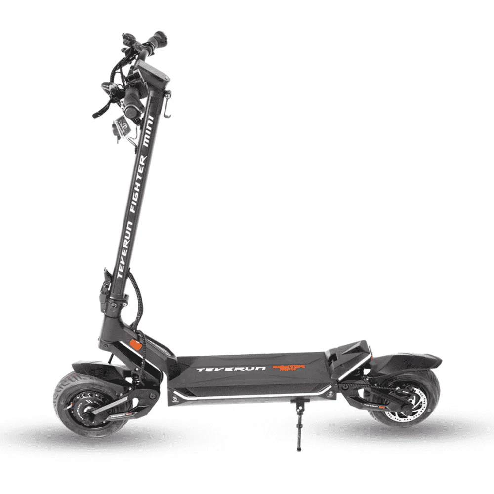 La Teverun Fighter Mini est l’exemple parfait de l’expression « il ne faut pas se fier aux apparences ». En effet, malgré son appellation « Mini », cette trottinette électrique reste une machine bien équipée avec des dimensions plus compactes. Teverun l’a équipé de deux moteurs de 2950W la propulsant à plus de 60 km/h sur routes privées. Son autonomie peut atteindre 80 km, ce qui la place dans la catégorie des trottinettes électriques de la classe moyenne supérieure.