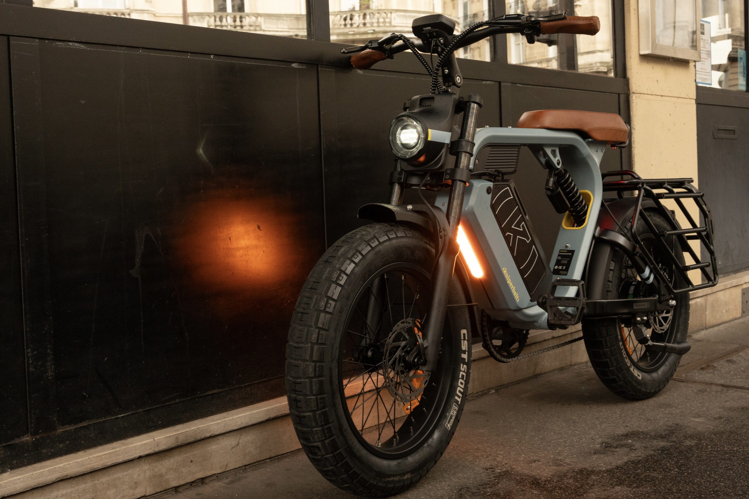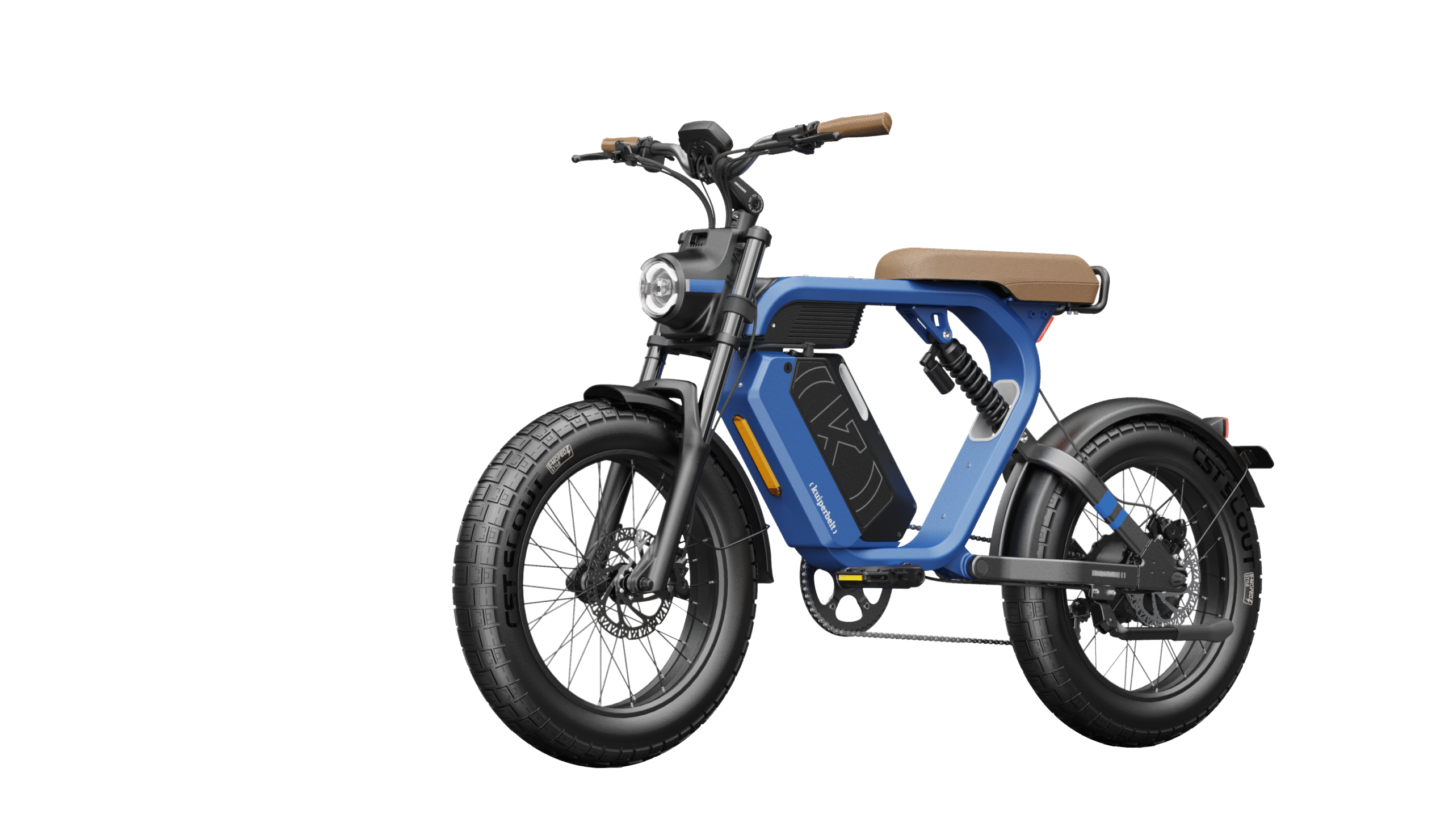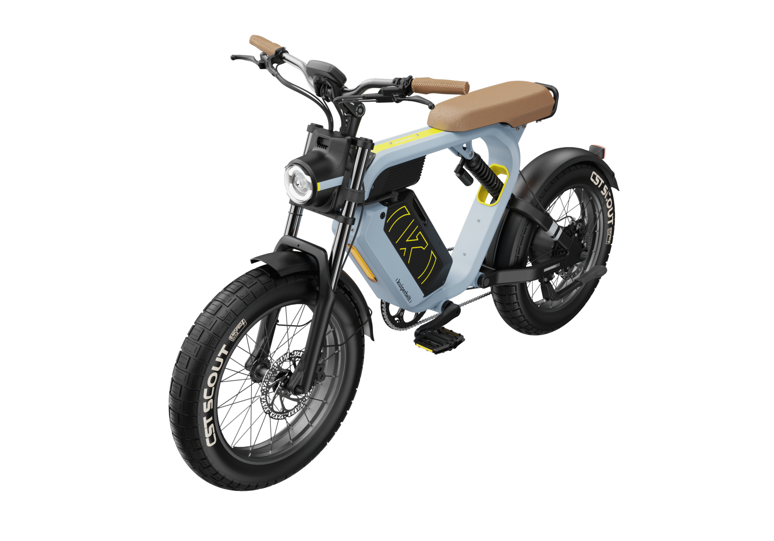 Construit autour d’un cadre en aluminium 6061, le Kuiperbelt S1 bénéficie d’une double suspension hydraulique : une fourche avant réglable et une suspension arrière intégrée qui absorbent efficacement les irrégularités du terrain. Ses pneus larges CST Scout 20×4” offrent une adhérence optimale et une stabilité exemplaire, que ce soit sur l’asphalte, les pavés ou les sentiers. Côté sécurité, le S1 mise sur des freins à disque hydrauliques Tektro à double pistons, assurant un freinage puissant et précis quelles que soient les conditions.